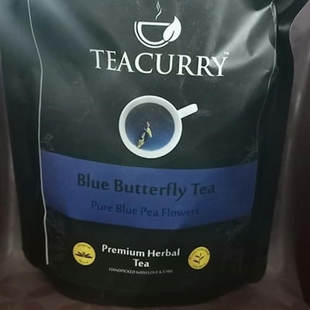Blue Butterfly tea can also be consumed cold or iced. Blue Butterfly Pea Flower tea has been used to cleanse the body and get rid of stress. Blue Butterfly Pea Flower Herbal Tea is also known as Asian Pigeon Wings, Blue Bell Vine, Blue Pea, Cordofan Pea, and Darwin pea, and is a perfect brain-boosting herb from tropical equatorial Asia. Blue Butterfly Pea Flower Herbal Tea can be enjoyed both hot and cold. The benefits of butterfly pea flower tea are to enhance memory, boost brain power and reduce stress. (Reference: Blue Pea Tea: Benefits, Health line Retrieved on 13 January 2023) This tea is extremely rich in antioxidants, and flavonoids. It is a caffeine-free herbal tea, which cleanses the body and improves hair and skin health. Blue butterfly tea is famous for its luminous indigo colour which changes to purple upon adding lemon juice to the tea. Teacurry Blue Butterfly Pea, without teabags, is also available in loose form. If you are looking to try this as a blue green tea blend then you should try our Blue Green Tea consisting of pure blue pea tea flowers of the Clitoria ternatea plant sourced from Andaman and green tea leaves from Assam.